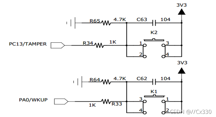 按键机械触点断开、闭合时,由于触点的弹性作用,按键开关不会马上稳定接通或一下子断开,使用按键时会有前后抖动的情况,产生不稳定的信号,需要软件消抖处理滤波,不方便输入检测,也有带硬件消抖功能,它利用电容放电的延时,消除了波纹,从而简化软件的处理,软件只需要直接检测引脚的高低电平即可。