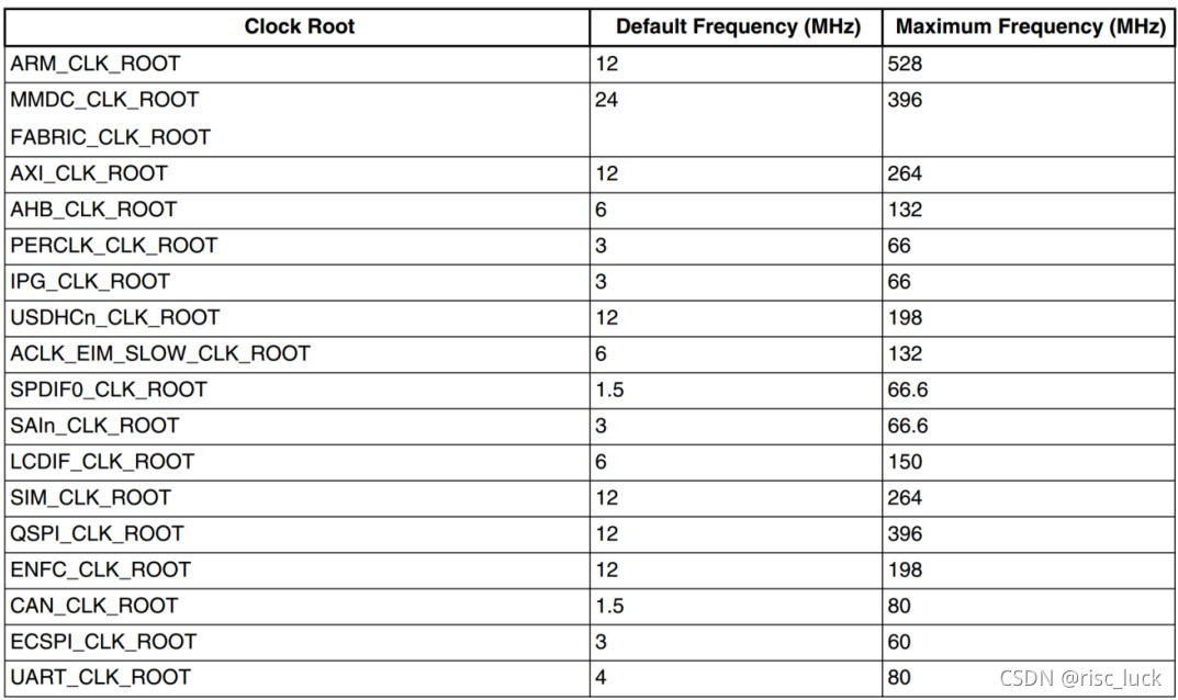 imx6u设置时钟可设置范围如下: 具体设置参考第二章时钟路线设置相应寄存器就很容易实现。