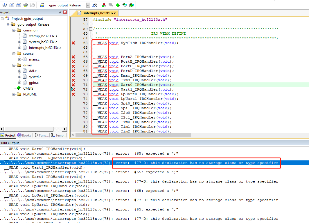 ..\..\..\..\mcu\common\interrupts_hc32l13x.c(73): error: #77-D: this declaration has no storage class or type specifier