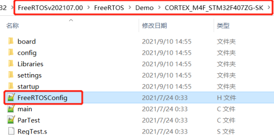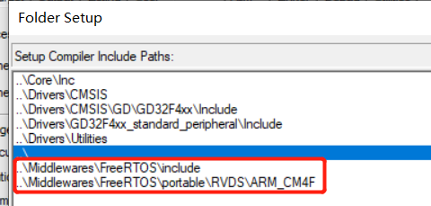 工程改缺少一个FreeRTOSConfig文件,因为Cortex_STM32f4系列和GD32f4用的是同一个内核,配置文件可以通用,所以去Demo文件去复制到FreeRTOS文件夹下的include文件夹中。