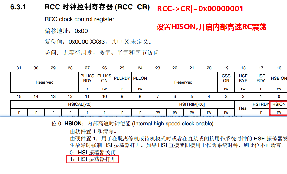 RCC->CR|=0x00000001; //设置HISON,开启内部高速RC振荡