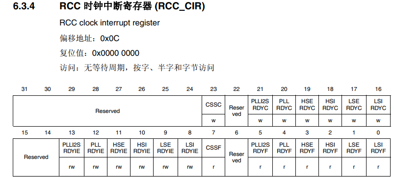 __IO uint32_t CIR; //清除/使能 时钟就绪中断