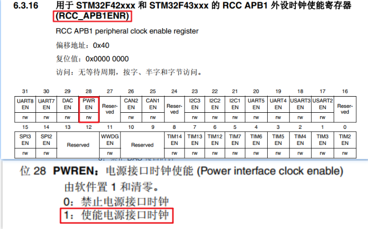 RCC->APB1ENR|=1<<28; //电源接口时钟使能