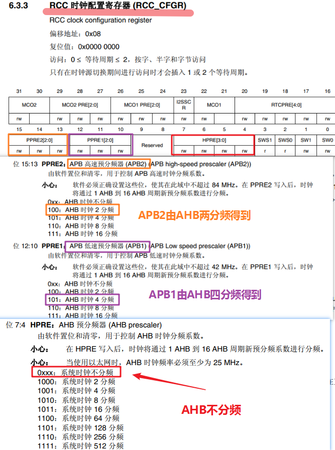 RCC->CFGR|=(0<<4)|(5<<10)|(4<<13);//HCLK 不分频;APB1 4分频;APB2 2分频.