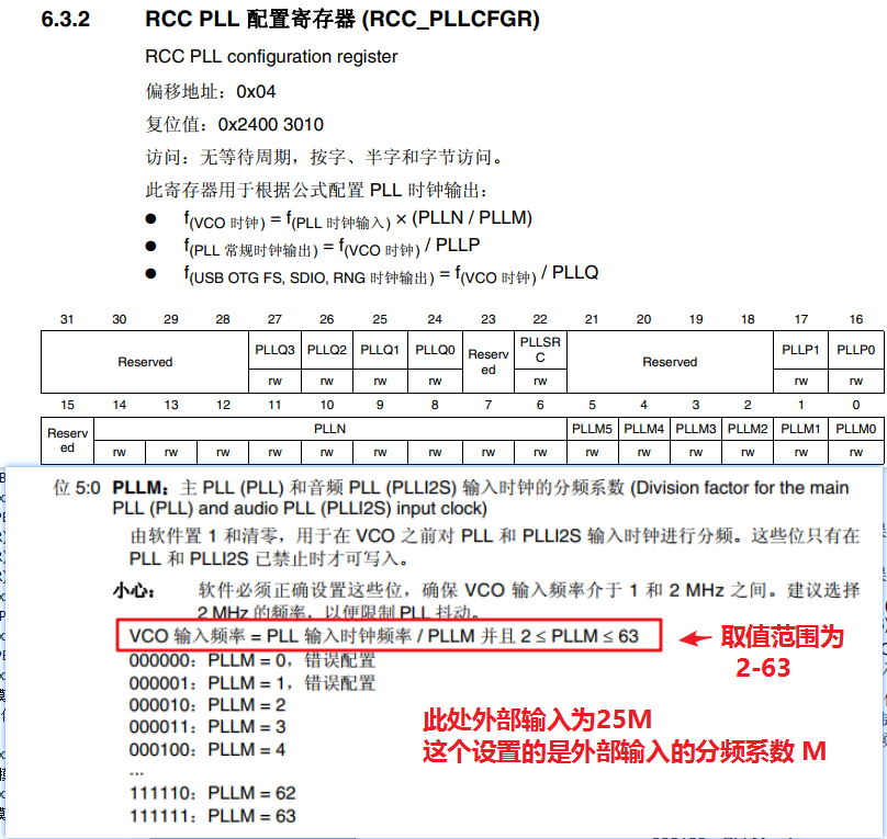 RCC->PLLCFGR = 0x24003010; //复位寄存器 PLLCFGR