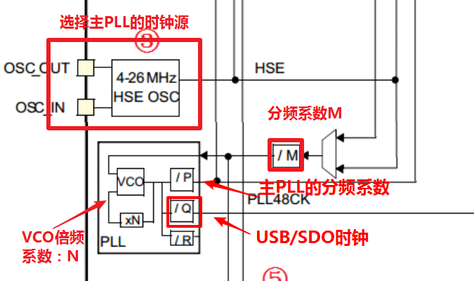 RCC->PLLCFGR=pllm|(plln<<6)|(((pllp>>1)-1)<<16)|(pllq<<24)|(1<<22);//配置主PLL,PLL时钟源来自HSE
