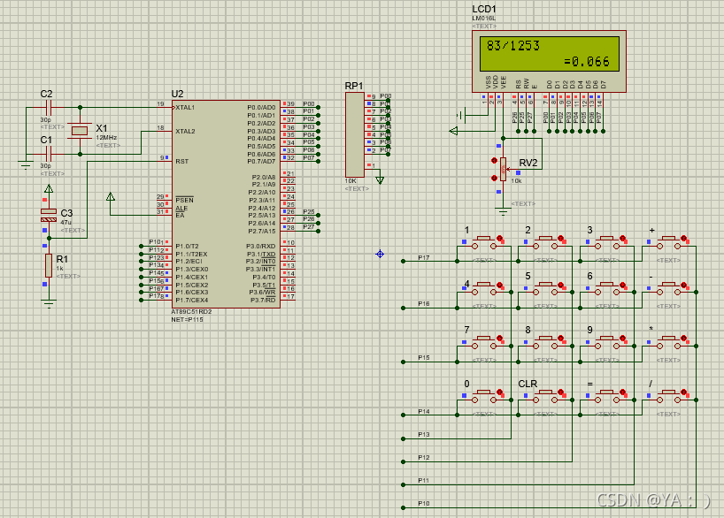 ????????分享一个小作品,是根据普中单片机给的简易计算器的代码的思路自己改写的,IO口的话也能对应的上开发板的引脚,他原来给的程序是只能实现两位数差十倍的加减乘除,特别是除法的话A/B? A<B在十倍以内是准确的,我自己把它改到了100倍之内是可以实现的,并且键值进行了重新排序。?