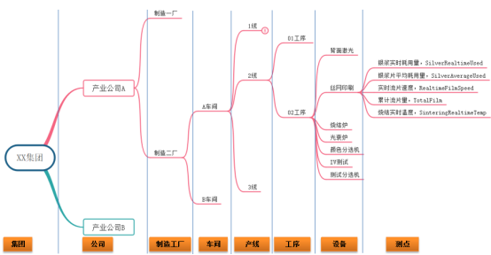 ? ? OT设备从空间上看,有归属的组织和安置位置等,时间上看,设备属性数据会根据时间而变化。从IT/OT融合角度,每个数据项具有集团->公司->制造部->车间->产线/班组->工序->设备->测点的多级数据层级体系,具备正品、次品等数据属性,具备生产、质量、设备等数据分类属性,具备时间和值的变化状态。