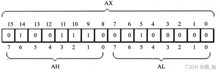 - AX的低8位(0~7位)构成了AL寄存器,高8位构成了AH寄存器,AH和AL寄存器是可以独立使用的8位寄存器