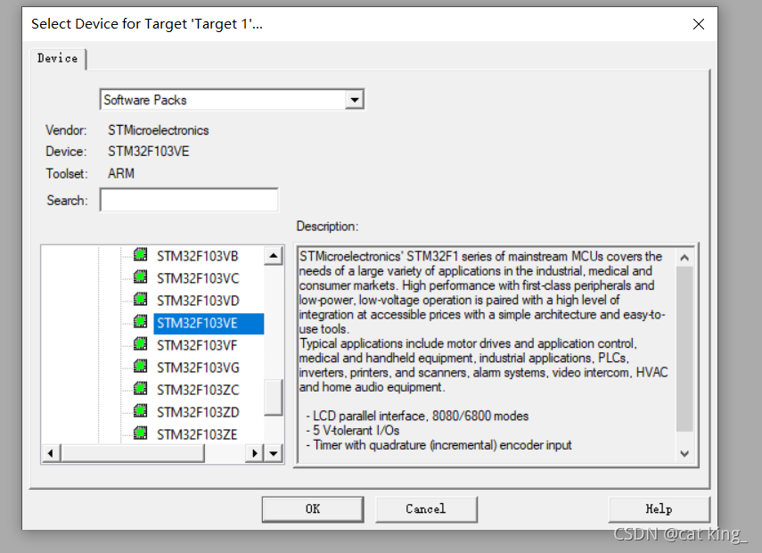 1、设置工程的目标环境,本文基于STM32F103VE,因此在弹出的窗口选择相应的选项,点击ok即可;具体如下图所示;