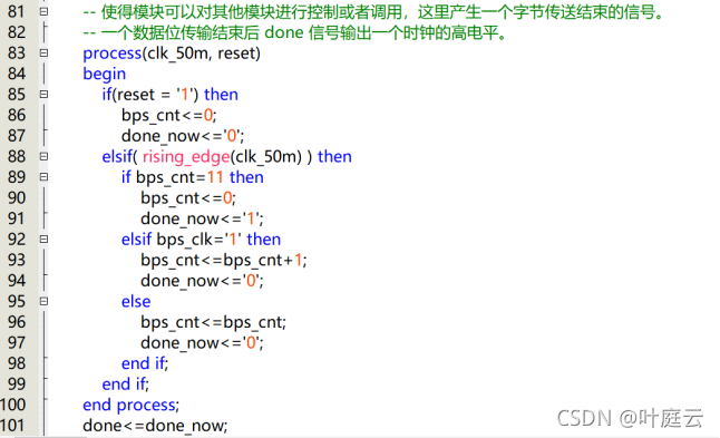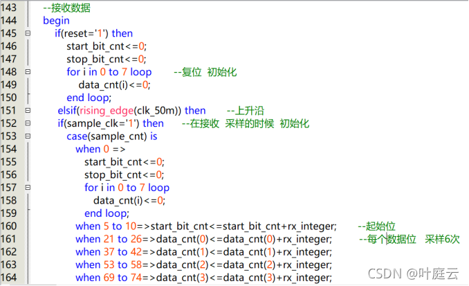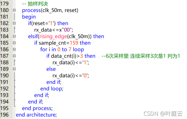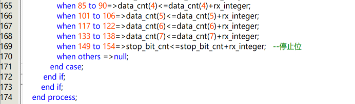 如上图所示,为接收模块的关键的 VDHL 代码。