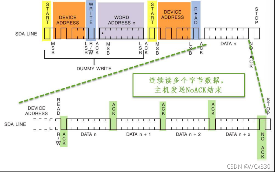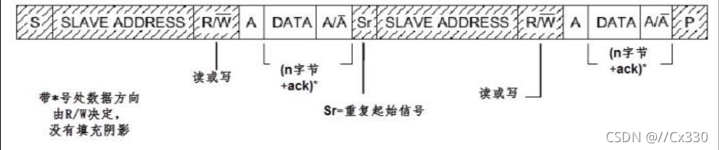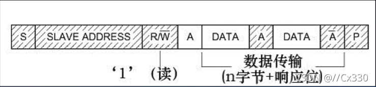 非阴影部分为:数据由从机传输至主机。(方向由读写位控制)