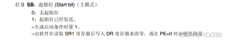 ?之后会产生EV5这一事件,在寄存器I2C_SR1可看到,检测SB位是否为1: