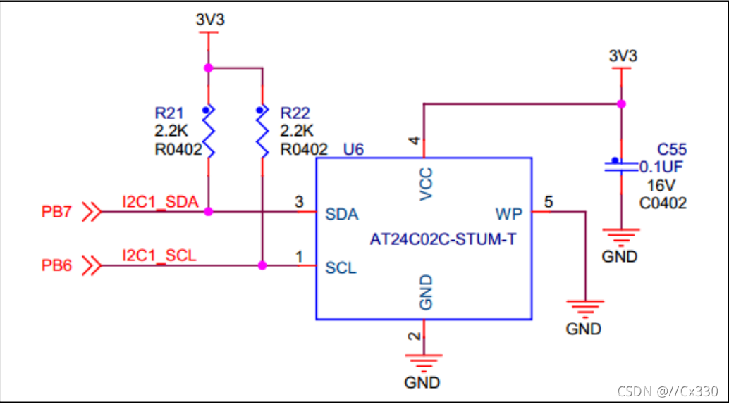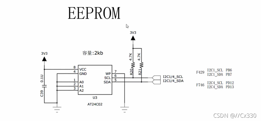 STM32的IIC外设可用作通讯的主机及从机,支持100Kbit/s和400Kbit/s的速率,支持7位、10位设备地址,支持DMA数据传输,并具有数据校验功能。