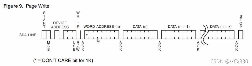 区别四:写入一页的数据(多个数据),不需要等待EEPROM写入一个字节是否完成,原因是在于它将写入的数据临时存储在一个地方