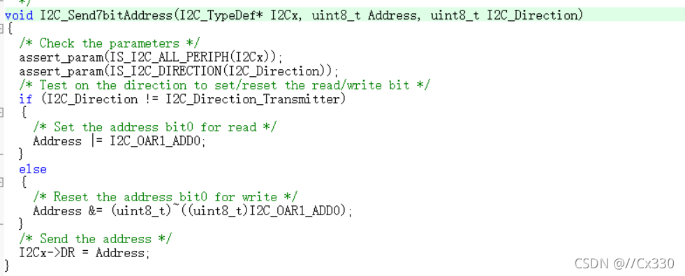 I2C_ClockSpeed:设置IIC的传输速率,函数会根据输入的数值经过运算后把时钟因子写入到IIC的时钟控制寄存器CCR。 -