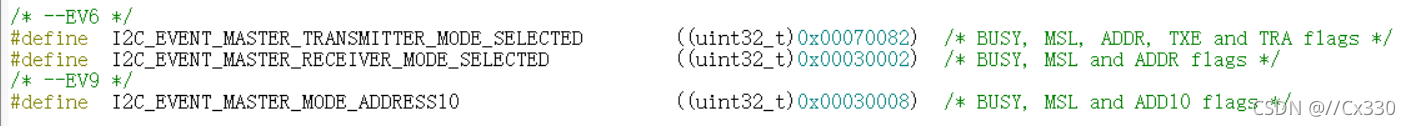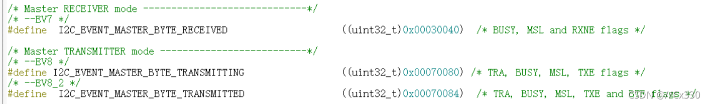 使用IIC外设通讯时,在通讯的不同阶段它会对“状态寄存器(SR1及SR2)”的不同数据位写入参数,通过读取这些寄存器标志来了解通讯状态。