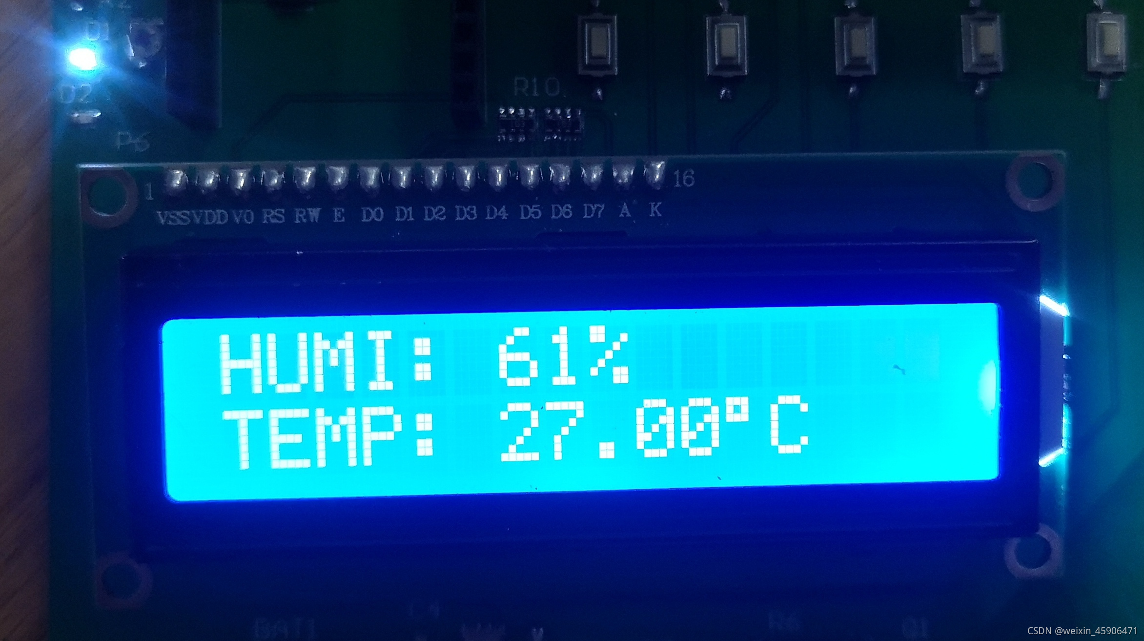 LCD1602_Print(0, 0, Dis); // 第一行显示湿度