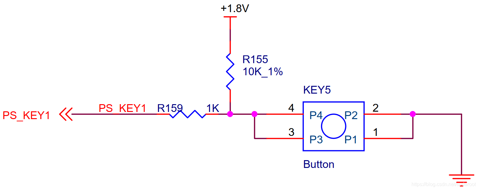 由硬件原理图得知:KEY接在MIO26,按键按下是电平;LED接在MIO40。