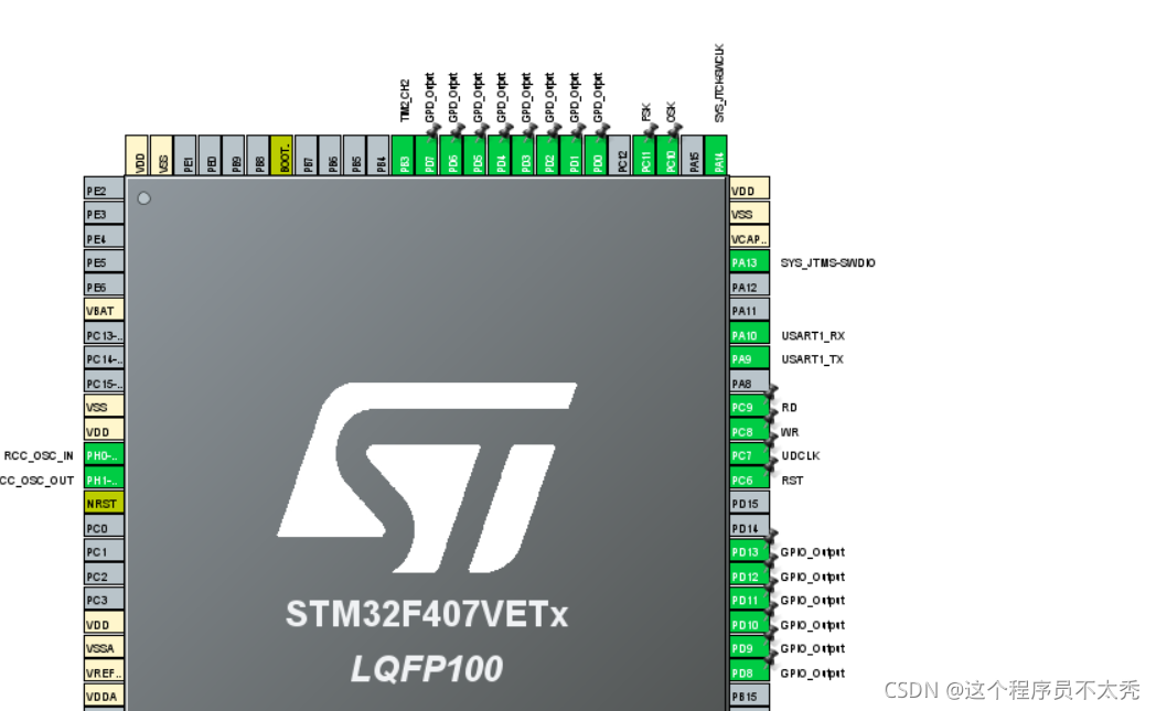 ? ?(1)CLK、RST等建议全部接引脚C组,最大输出速度 --high。 ? ?(2)D0-7,A0-5 接引脚D组,注:不能接PD14,PD15。 ? ?(3)DDS上的vcc和GND 需要接单片机,形成数据、电压回路。可接上9V 电源,输出波形更加稳定。?