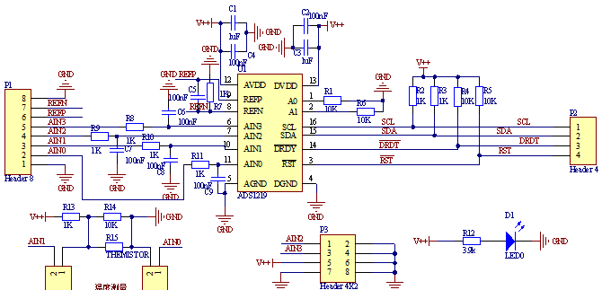 - 这里用段子做了温度测量、差分选择,是为了后续使用跳线帽来实现;