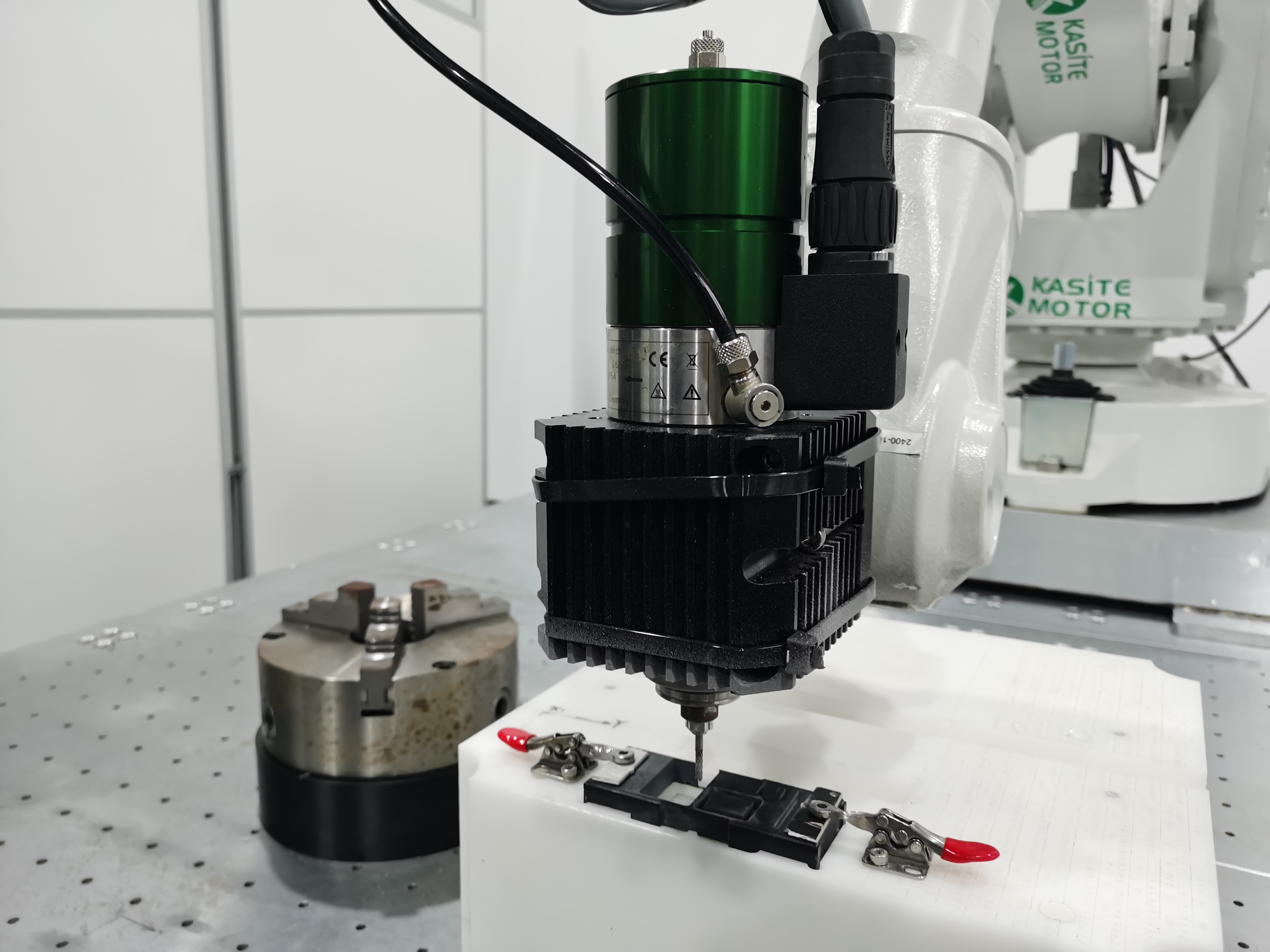 机器人对汽车金属零部件铝合金、钛合金、钢、铸铁等切割,随着金属材料硬度的提高,对主轴的转速、扭矩、功率等要求也随之提高。我们推荐Kasite 4060 ER-S、Kasite 50100 AC–duo、SycoTec 4064 DC HSK25等高速电主轴,转速高、功率大、扭矩大,可满足机器人对金属材料切割高效率、高精度、无毛边的加工要求。