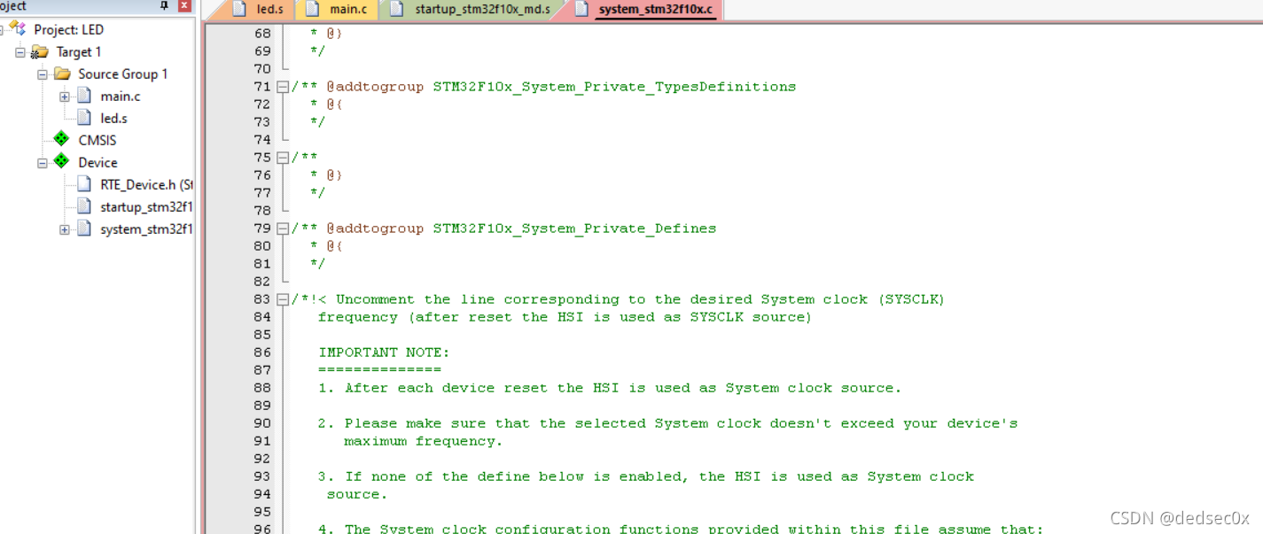 GPIOA_ODR&=~(1<<4); //设置初始灯为灭