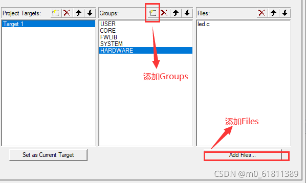 ?然后创建Groups名字,点击右边的Add Files…按钮添加相应的文件,结果如图所示