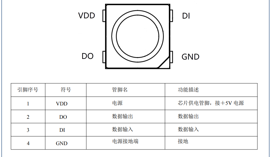 单个灯珠连接将DIN脚连接至某一个IO口并接上电源即可 多个灯珠串联将第一个灯珠的DOUT脚连接至下一个灯珠的DIN脚