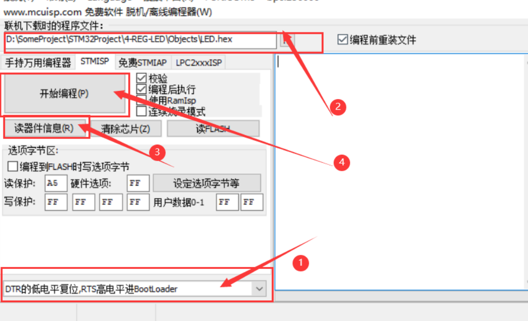 连接到电脑,打开mcuisp,上传HEX文件到stm32f103c8t6上: