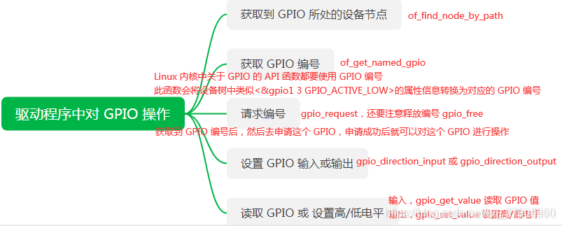 - gpio_free: 对应gpio_request,用来释放申请后用完了的gpio。