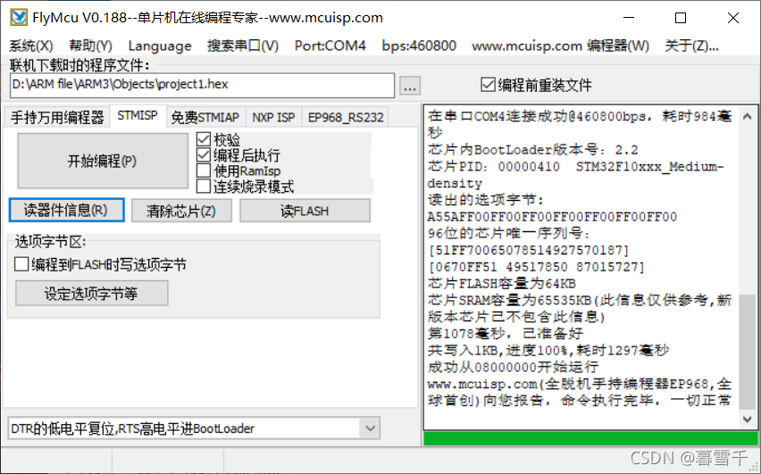 ?然后用FlyMcu串口调试器把写好的程序烧入