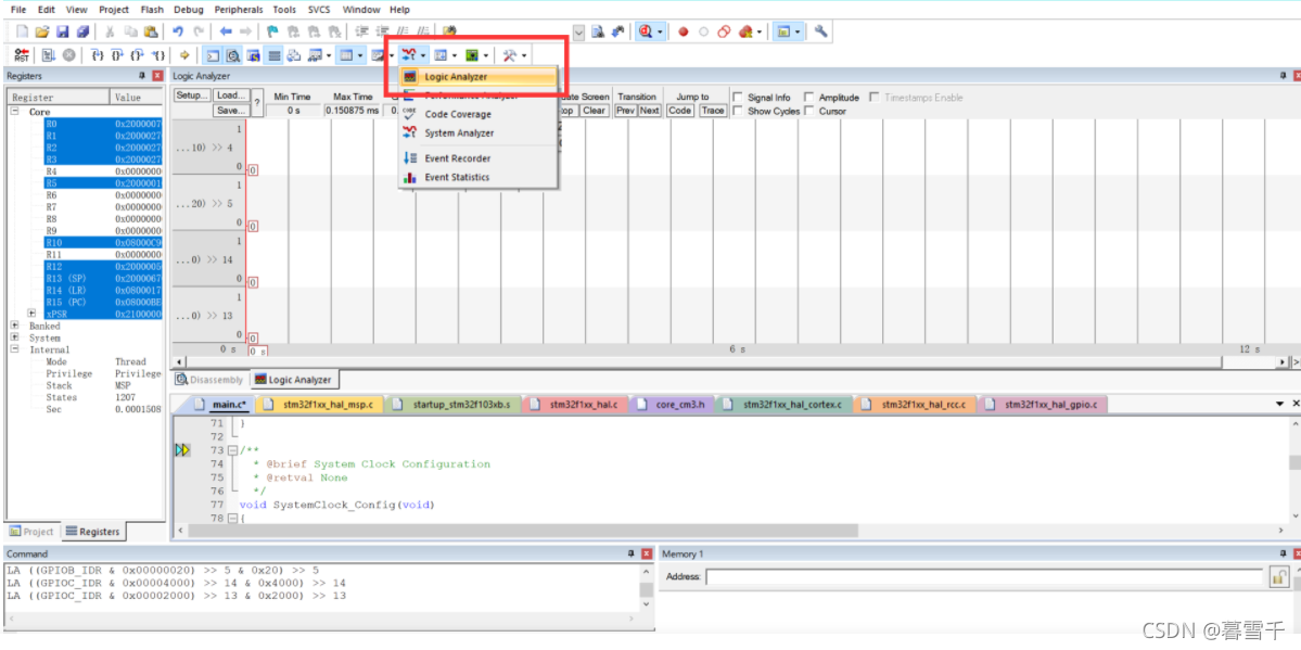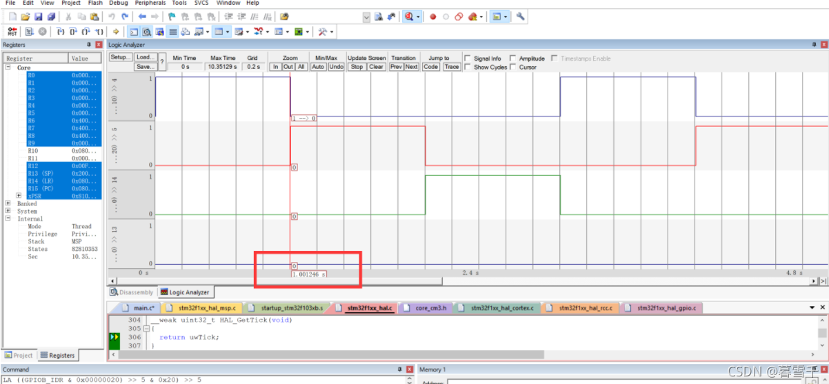 使用Keil的软件仿真逻辑分析仪功能观察管脚的时序波形