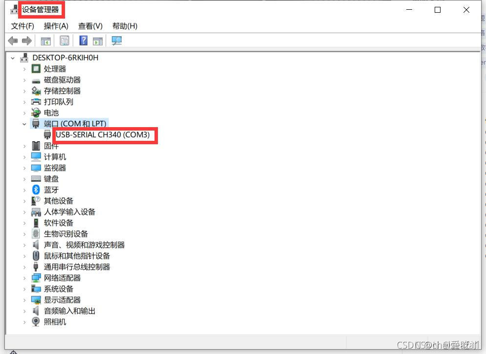 在电脑上安装usb-串口驱动程序,在设备管理器中可以搜索到一个新的串口设备(COM3)