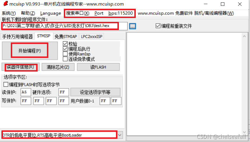 运行烧录软件mcuisp,配置?