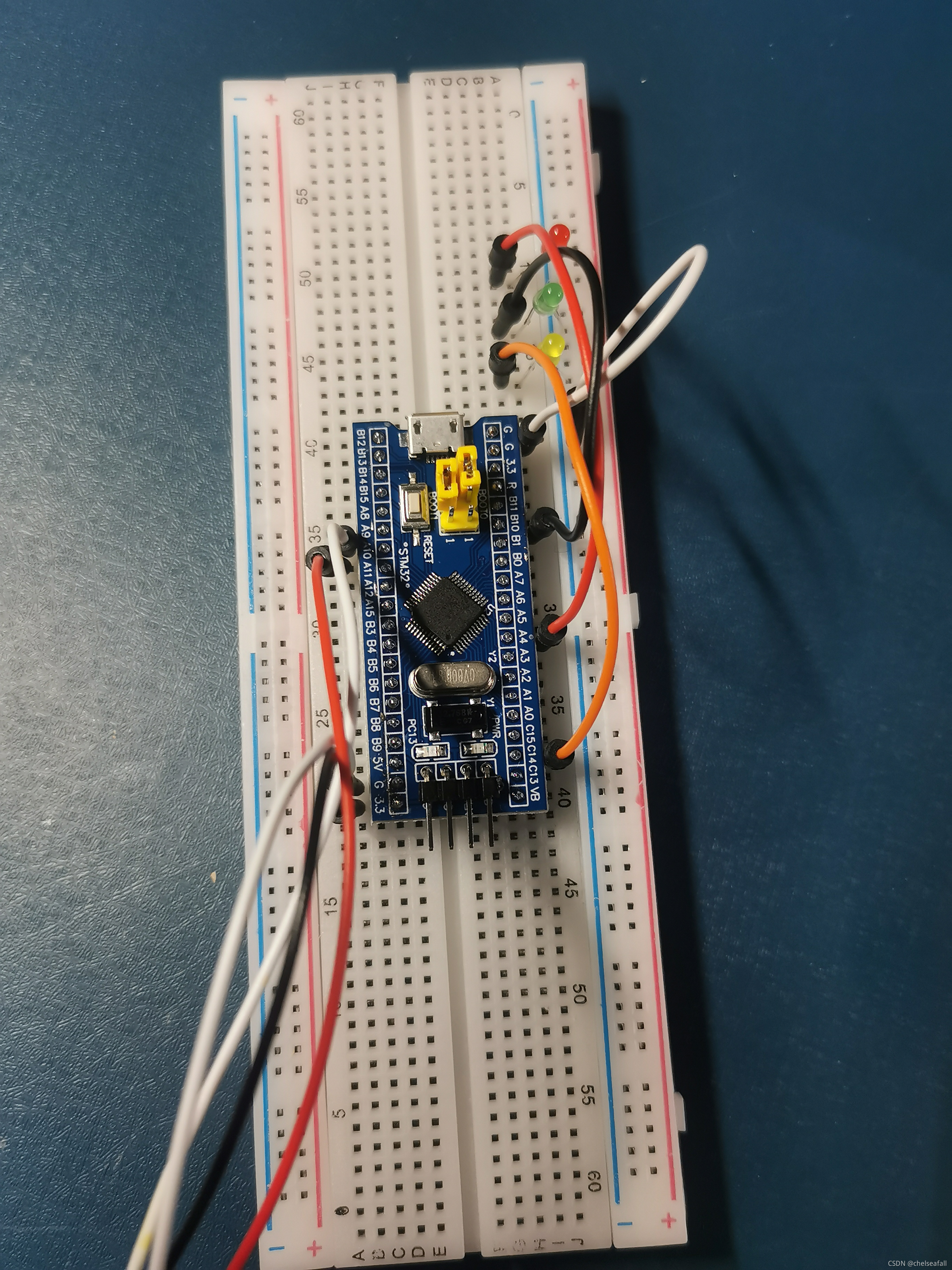 实验要求:以 STM32最小系统核心板(STM32F103C8T6)+面板板+3只红绿蓝LED 搭建电路,使用GPIOB、GPIOC、GPIOD这3个端口控制LED灯,轮流闪烁,间隔时长1秒。1)写出程序设计思路,包括GPIOx端口的各寄存器地址和详细参数;2)分别用汇编语言,C语言编程实现。
