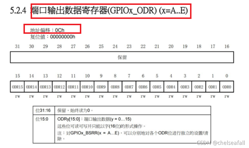 (5) 找到端口输出寄存器(GPIOx_ODR)