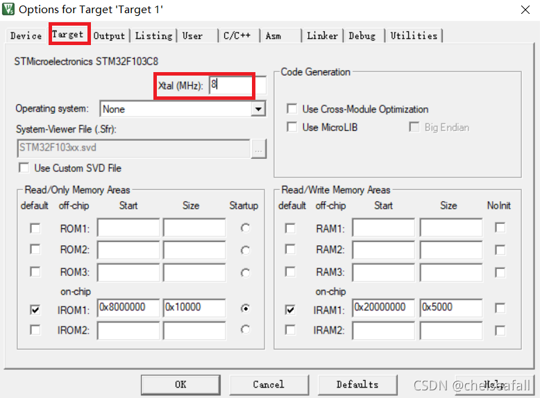 ?在Target栏中修改晶振频率值为8