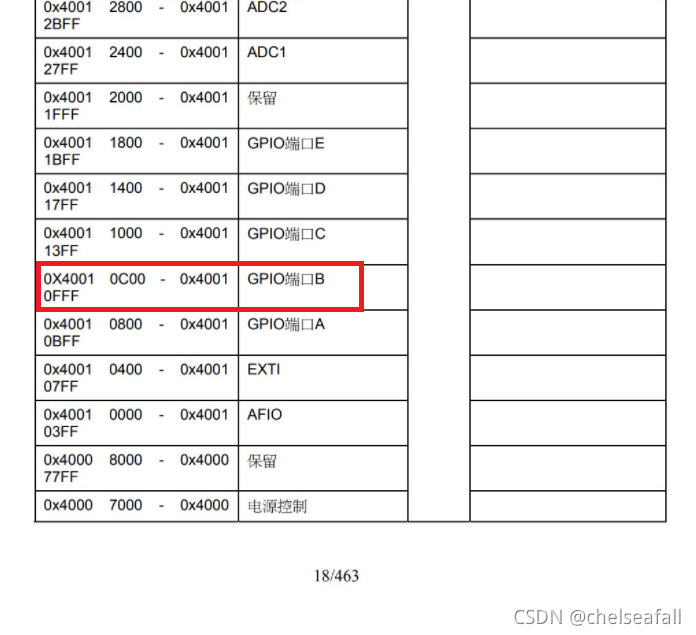(1)先找到GPIOB端口的起始地址,为0X4001 0C00