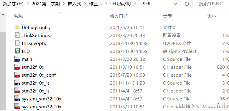 HARDWARE文件夹是用来存放外设硬件代码,OBJ用来存放生成调试代码,FWLIB是各种.c和.h文件