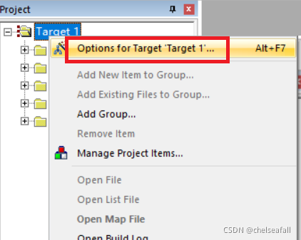 ?右击Target 1,选择Manage Project Items…