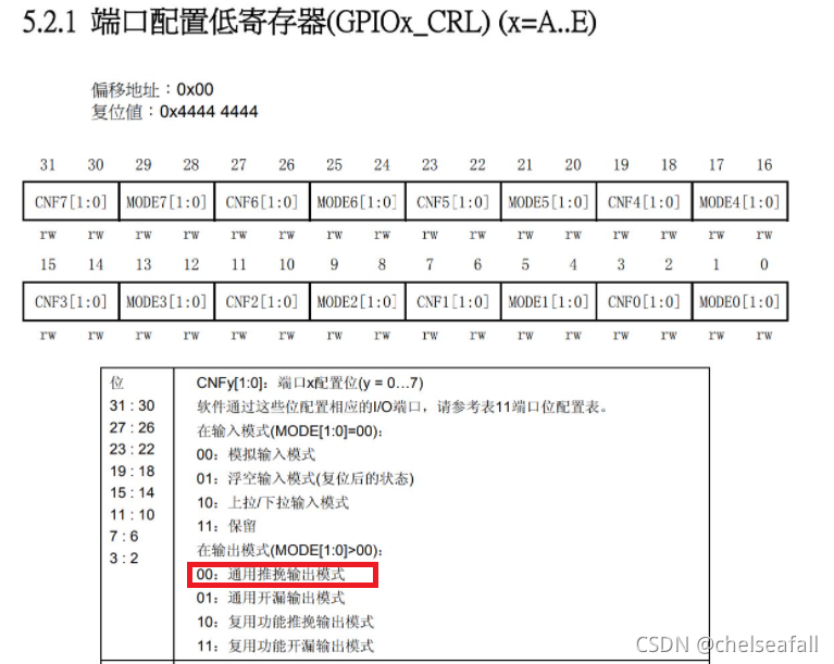 ?(4)找到端口配置低寄存器(GPIOx_CRL)
