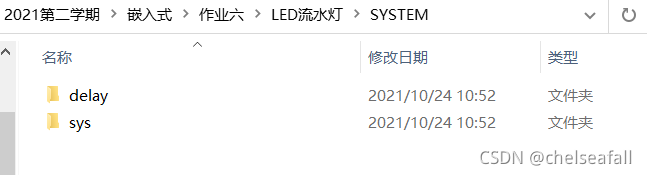 流水灯的设计思路为:控制寄存器输出1,点亮LED灯,在一段时间之后,再控制LED灯灭,然后加入循环语句,呈现出的效果,就是流水灯。
