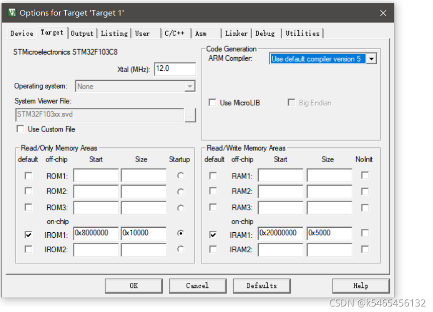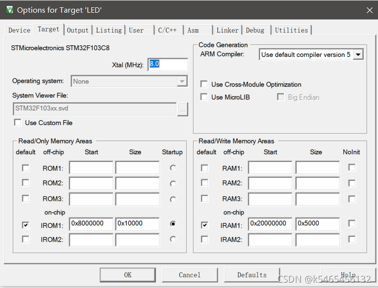 Dialog.DLL下改为DARMSTM.DLL,Parameter下改为-pSTM32F103C8?