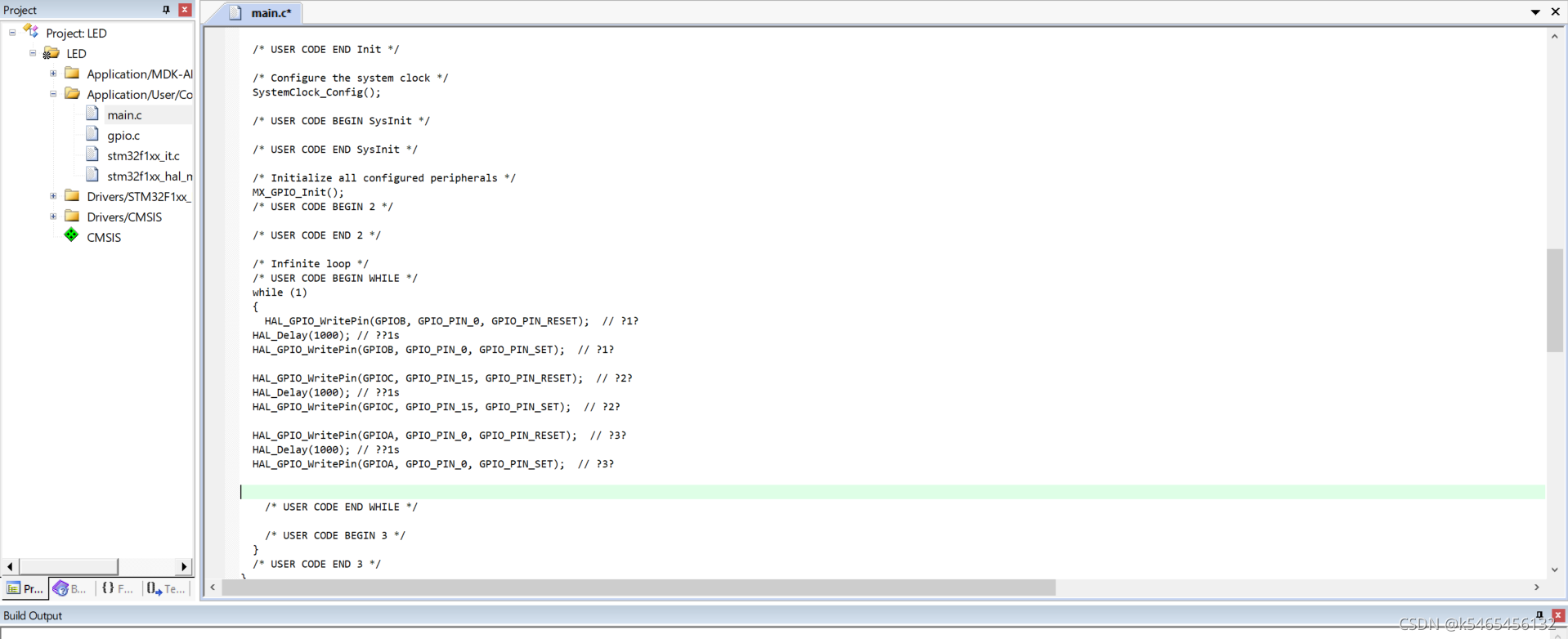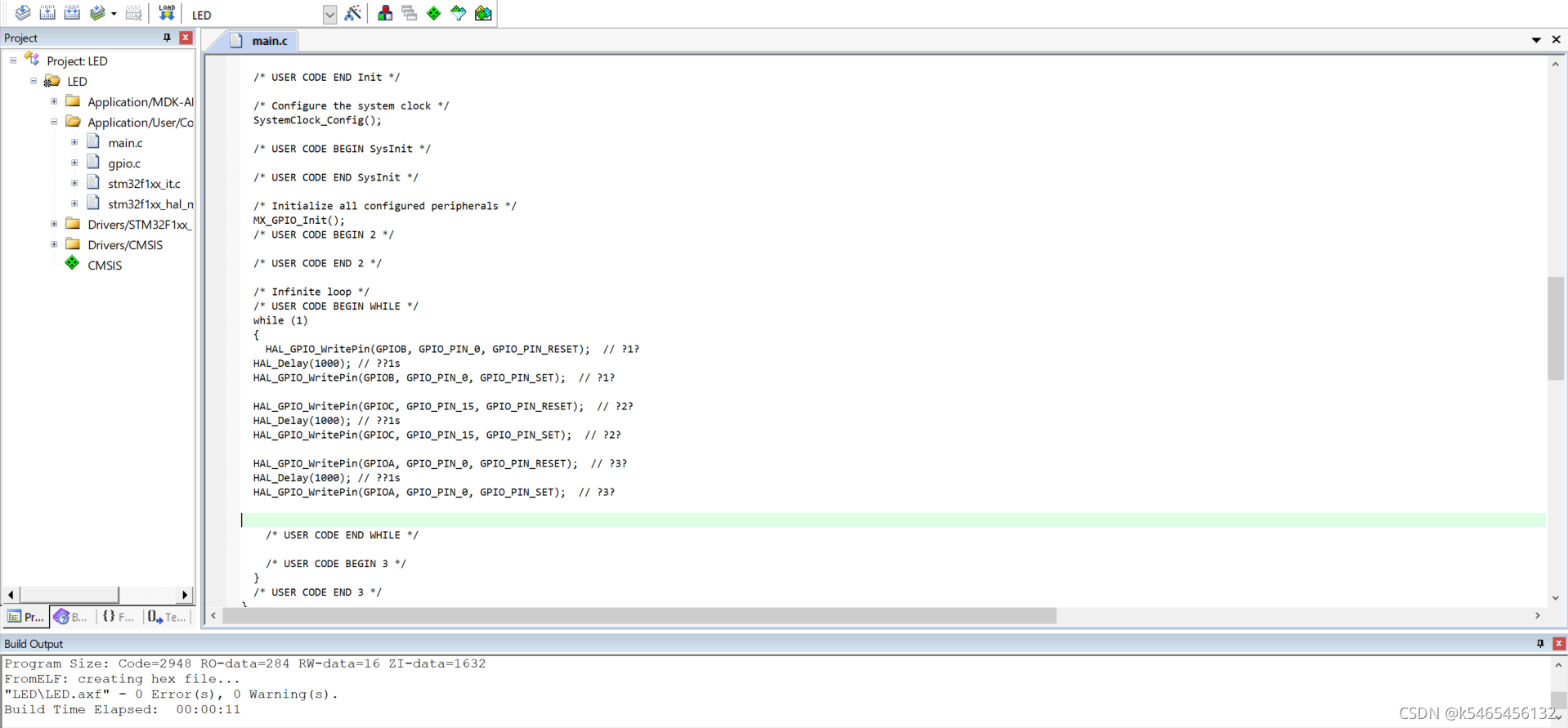 自动生成的代码是由HAL库版本的代码,这里添加的代码使其中的函数