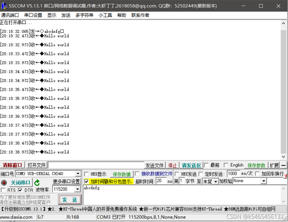 之后我们把文件烧到单片机中,然后在用串口助手发送,如图所示:
