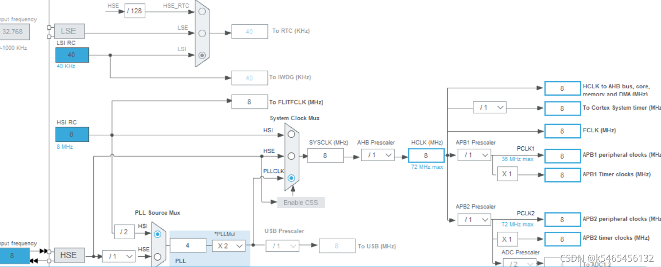 之后我们选择Clock Configuration,然后将HSI改成PLLCLK,其他的参数不用改?