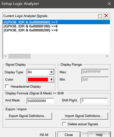点击左上角setup,弹出对话框,添加需要查看的波形的的引脚,点击右上角的添加输入