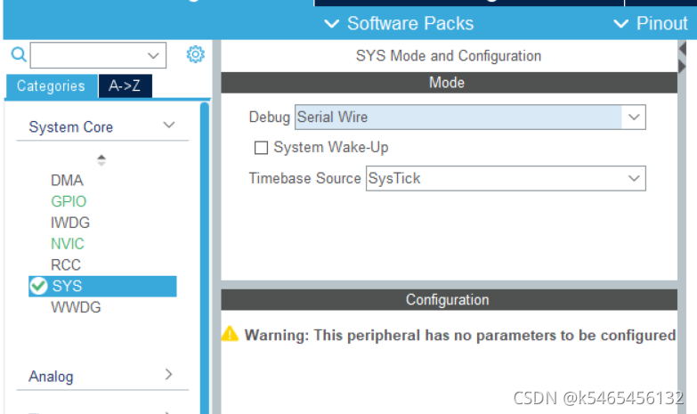 我们选择system core下的sys?,将debug设置为serial wire