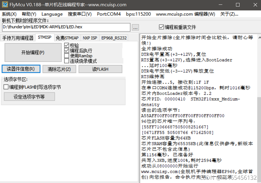 四、烧写与硬件实现 用mcuisp进行烧写